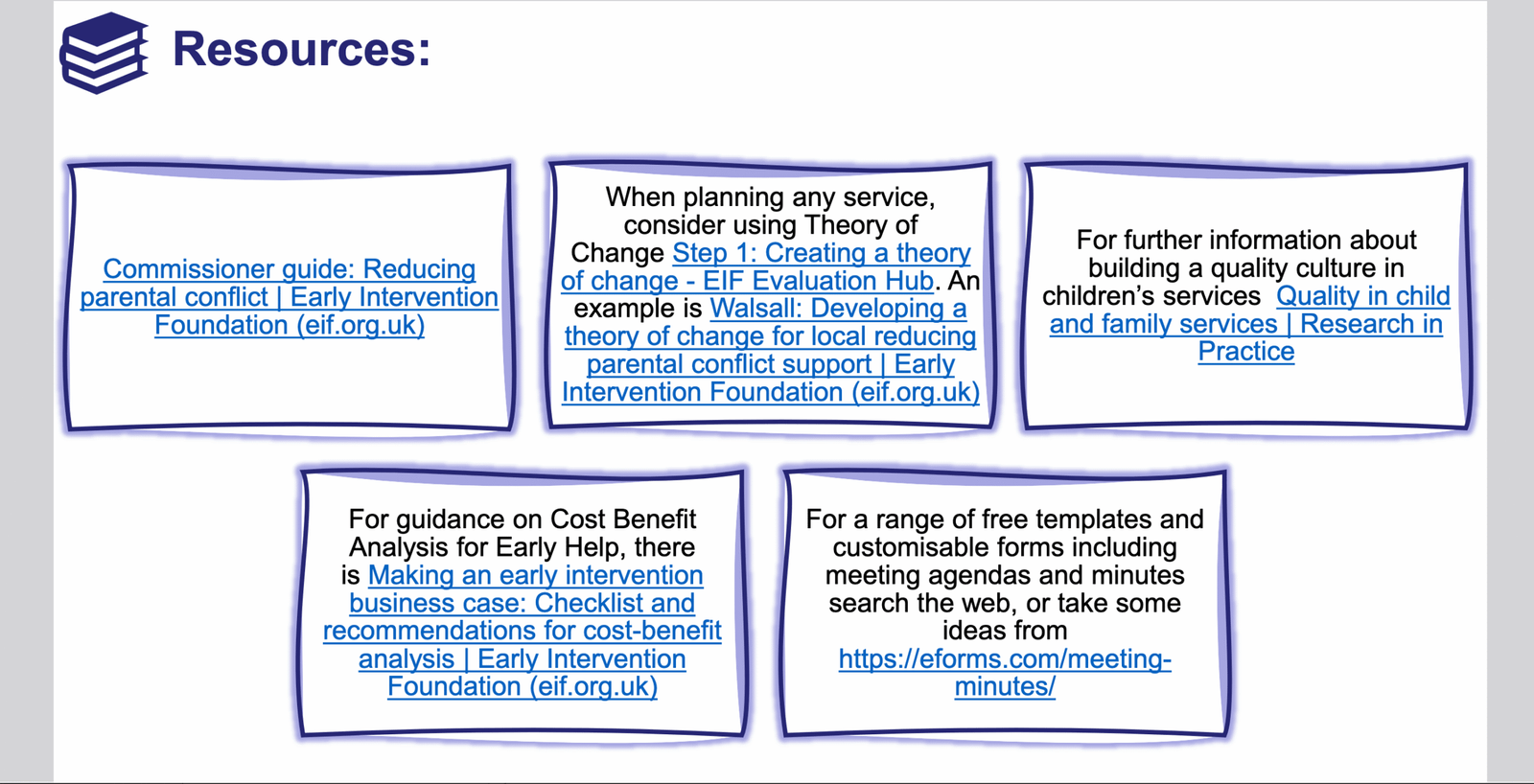 For leaders responsible for strategic development of services for families, here is a packed powerpoint of how to do it. It is full of neatly presented thinking with links to myriad resources and examples of best practice.