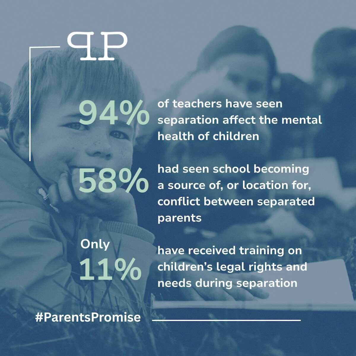 In a survey of over 7000 teachers released today as part of this initiative, teachers have reported significant disruption to the learning, attendance and mental health of children experiencing the separation of their parents. According to the new survey, 94% of teachers have seen separation affect the mental health of children, while 58% have observed schools becoming a source of, or location for, conflict between separated parents.